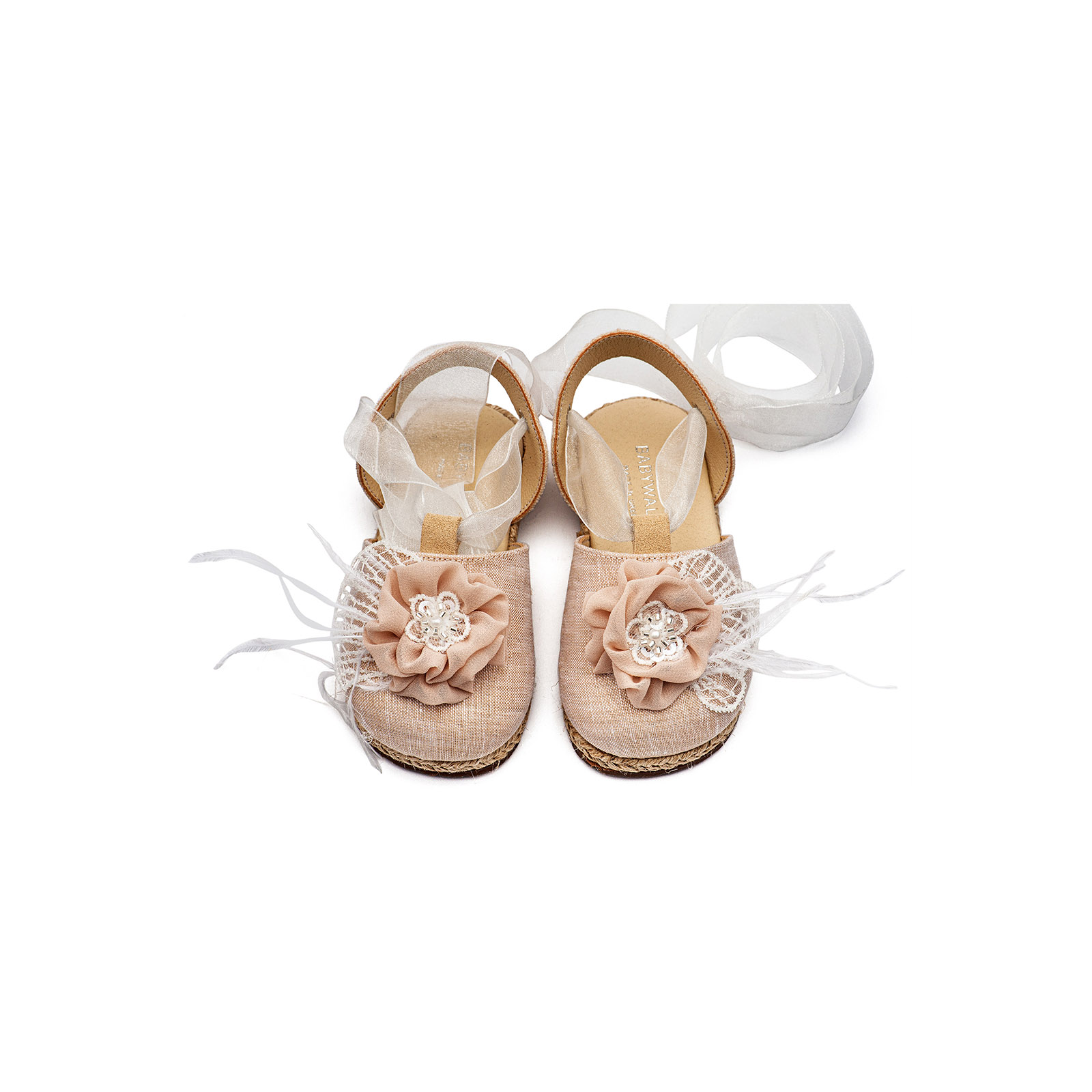 Υφασμάτινη Εσπαντρίγια, με Χειροποίητο Διακοσμητικό, με Πούπουλα σε Εκρού Nude Χρώμα της εταιρείας Babywalker.
