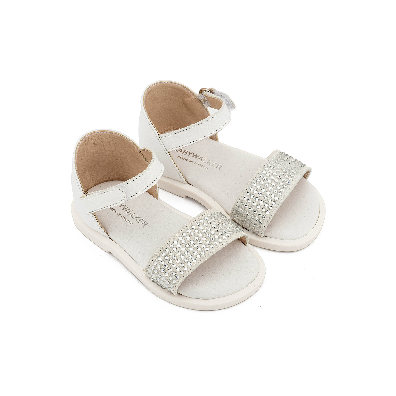 Δερμάτινο Πέδιλο, Διακοσμημένο με Στρας, σε Λευκό Χρώμα της εταιρείας Babywalker.
