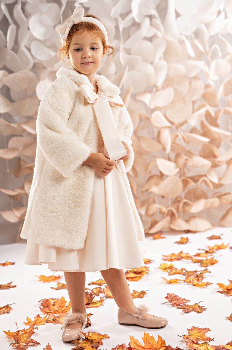 Ένα εξαιρετικής ποιότητας γούνινο παλτό σε απαλό off white χρώμα και γραμμή Α, που αγκαλιάζει ζεστά