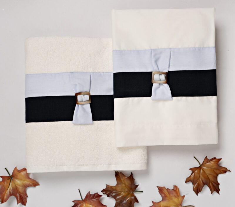 Βαμβακερά λαδόπανα σε ιβουάρ χρώμα με διπλή φάσα σε μπλε και σιελ.