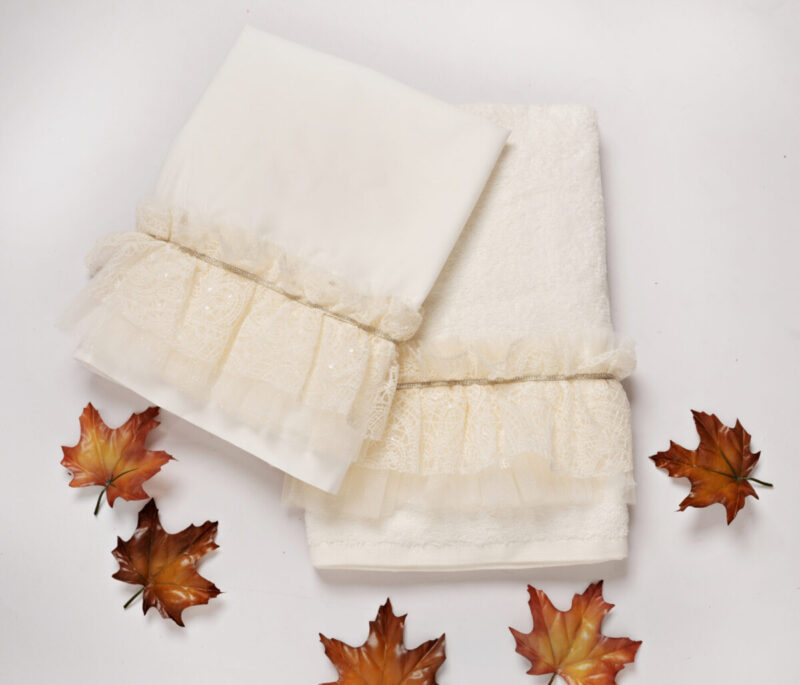 Bαμβακερά λαδόπανα σε ιβουάρ χρώμα με εντυπωσιακή δανδέλα.