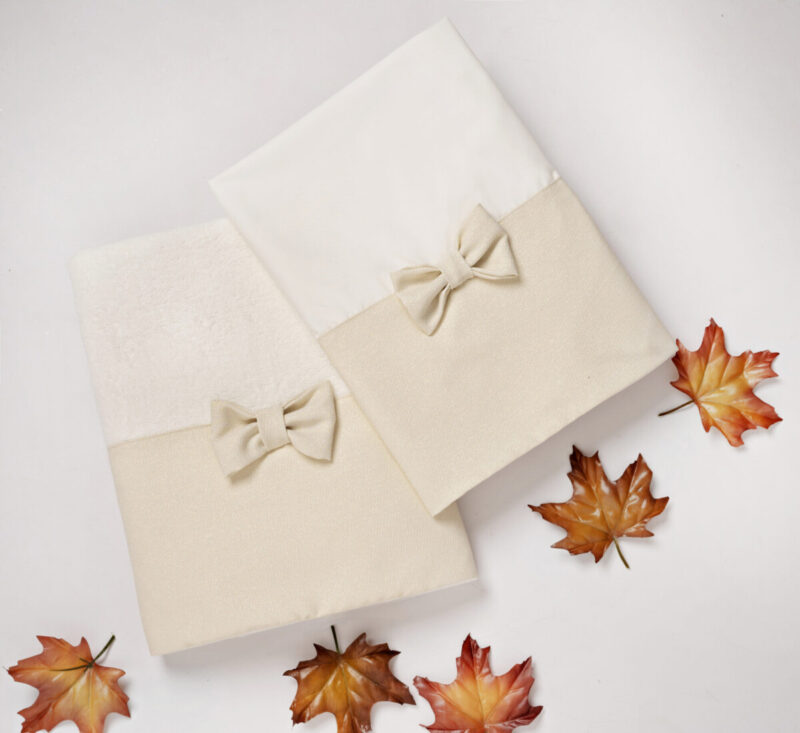 Bαμβακερά λαδόπανα με χρυσό lurex ύφασμα και φιογκάκι.