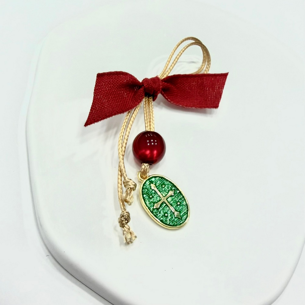 Μαρτυρικό Πέτου με σταυρό, χάντρα και κορδέλα μπορντό