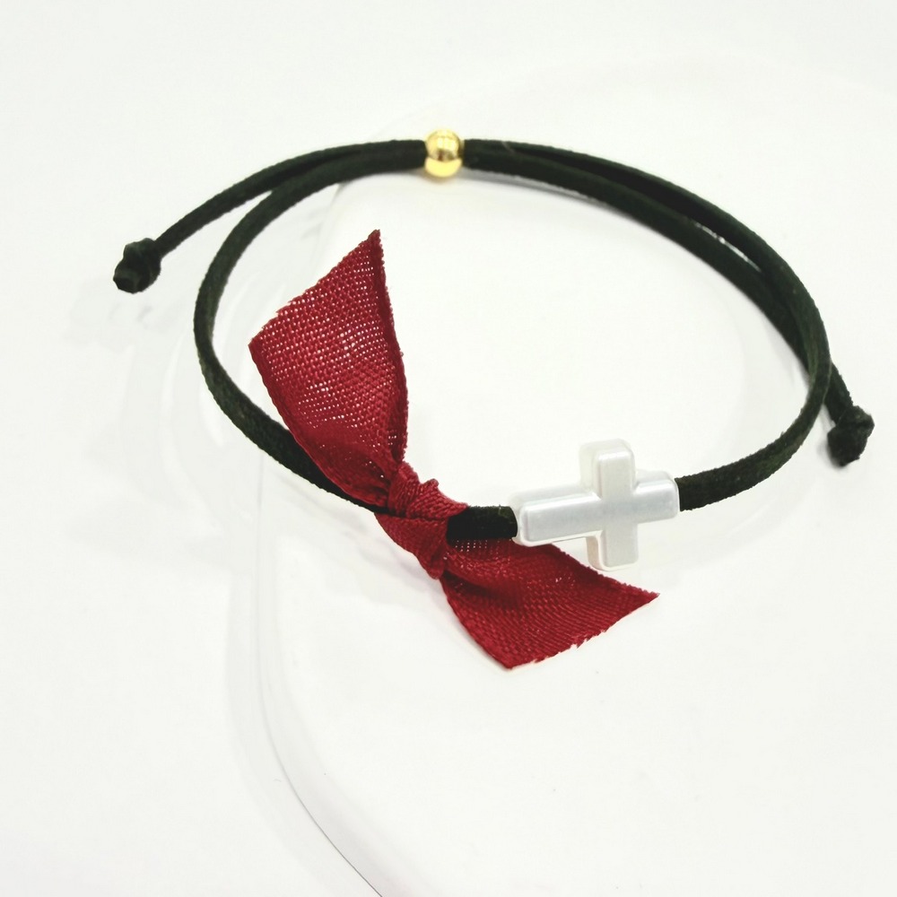 Μαρτυρικό βραχιόλι με μαύρο δερματάκι, λευκό σταυρό και μπορντό κορδέλα